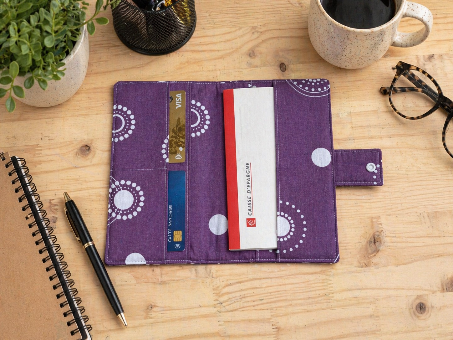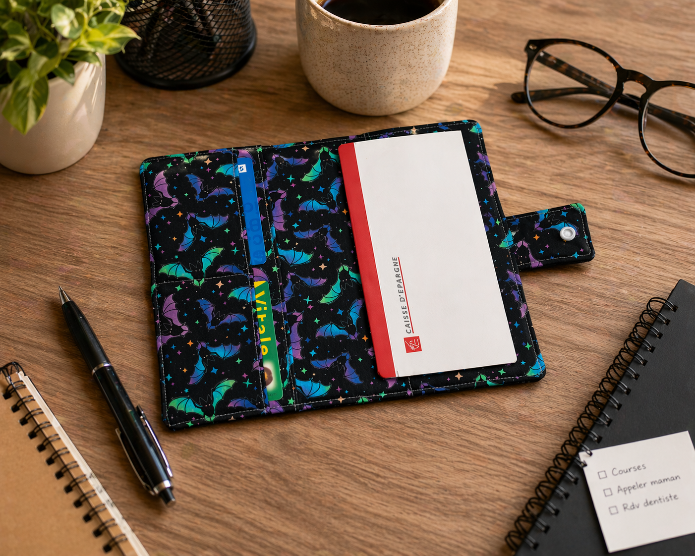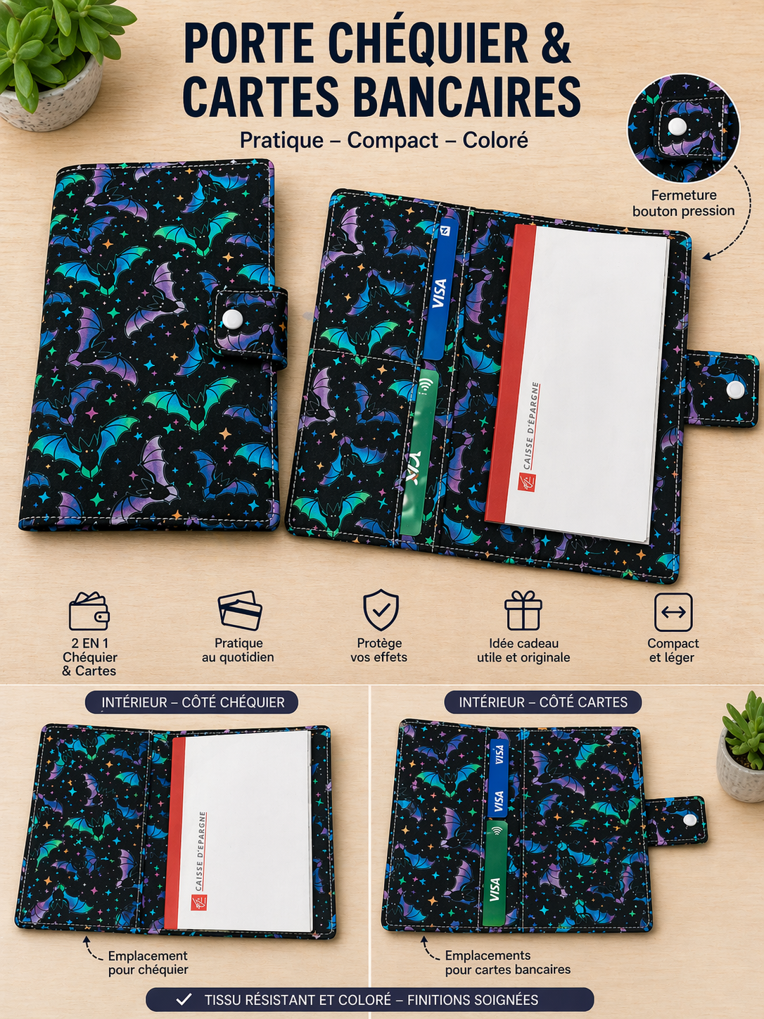 Ce protège-chéquier est idéal pour organiser vos essentiels du quotidien. Il permet de ranger facilement votre chéquier ainsi que vos cartes importantes (carte bancaire, carte vitale, carte d’identité).